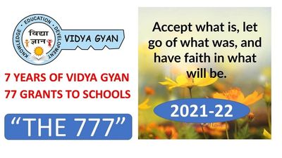 Celebration of Vidya Gyan’s 7 successful years since its humble beginnings. In our quest to build new and/or strengthen existing relationships, Vidya Gyan offers 77 grants of Rs. 7000 each.